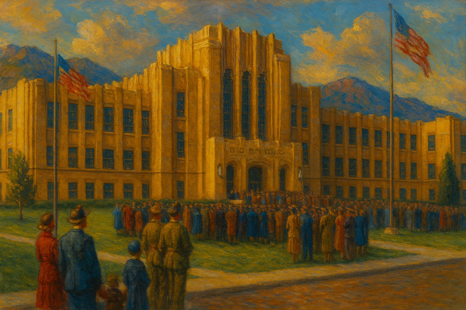 Yet even amid the hardships, glimmers of resilience appeared. Federal New Deal projects brought a modest infusion of jobs and infrastructure. In 1934, construction began on Pineview Dam in Ogden Canyon as part of an irrigation project, and by 1937 Ogden celebrated the opening of a splendid new Ogden High School, an Art Deco showpiece funded by the Public Works Administration. Dubbed Utah’s “million dollar school,” its construction created desperately needed work for “hundreds of workers” and boosted local morale. At the same time, civic boosters in Ogden were eyeing an even bigger lifeline: the rising drumbeat of war in the late 1930s. The Ogden Chamber of Commerce aggressively lobbied federal authorities to locate defense installations in the area as a way to jolt the economy back to life. One early success was reactivation of the Ogden Arsenal (an Army munitions depot west of town). Largely mothballed after World War I, the arsenal got a New Deal-funded upgrade in 1935–38, with the Works Progress Administration building a new ammunition plant there. This effort paid off: by 1938 the arsenal was hiring again, and when war broke out it would explode to over 6,000 civilian workers by 1943 churning out bombs, shells, and small arms. The groundwork was being laid for Ogden’s wartime revival.